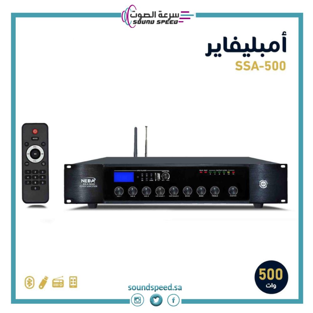جهاز أمبليفاير NEDA SSA-500 من مؤسسة سرعة الصوت للصوتيات هو الخيار المثالي إذا كنت تبغى جودة صوت عالية وموثوقية في أي مناسبة، سواء كانت شخصية أو تجارية.