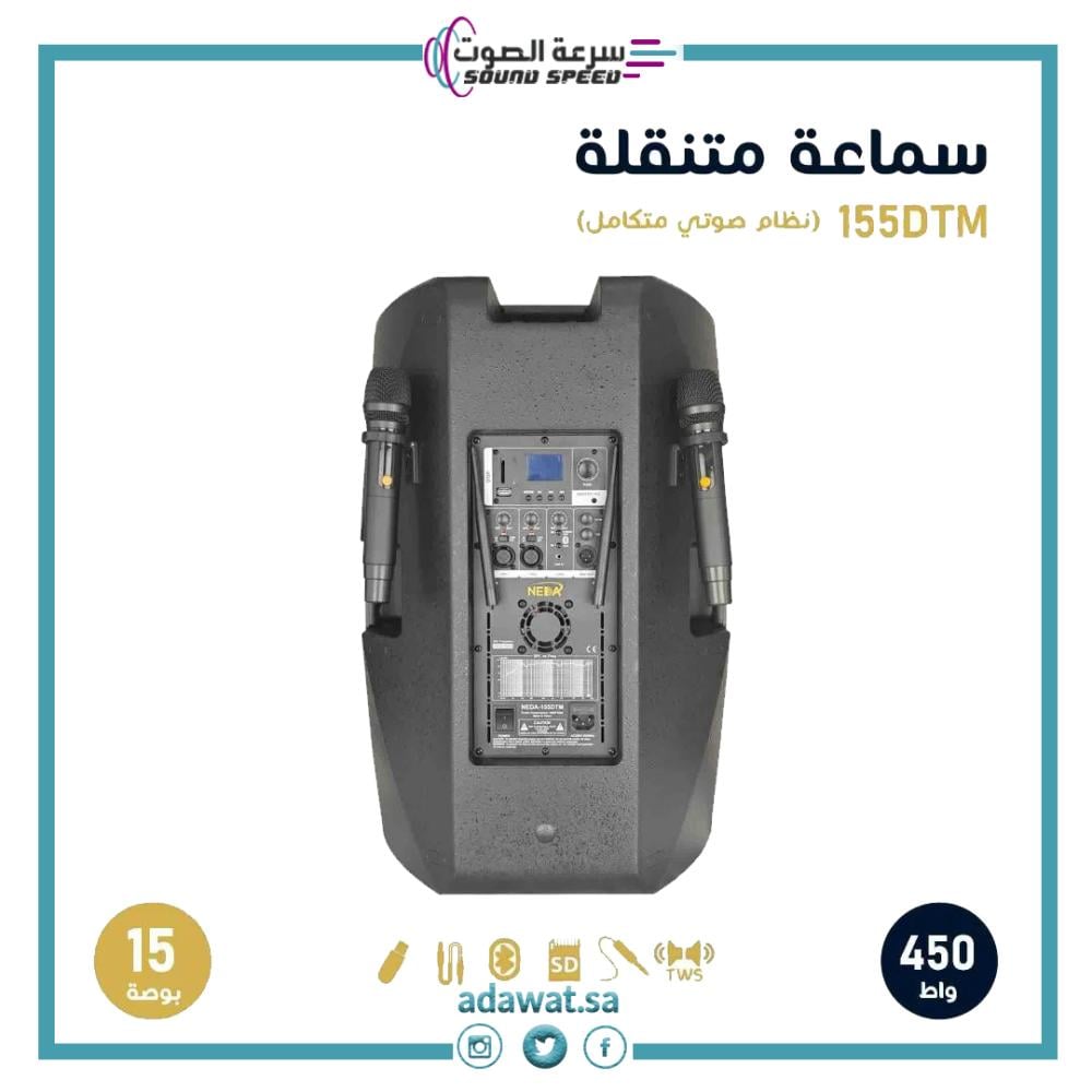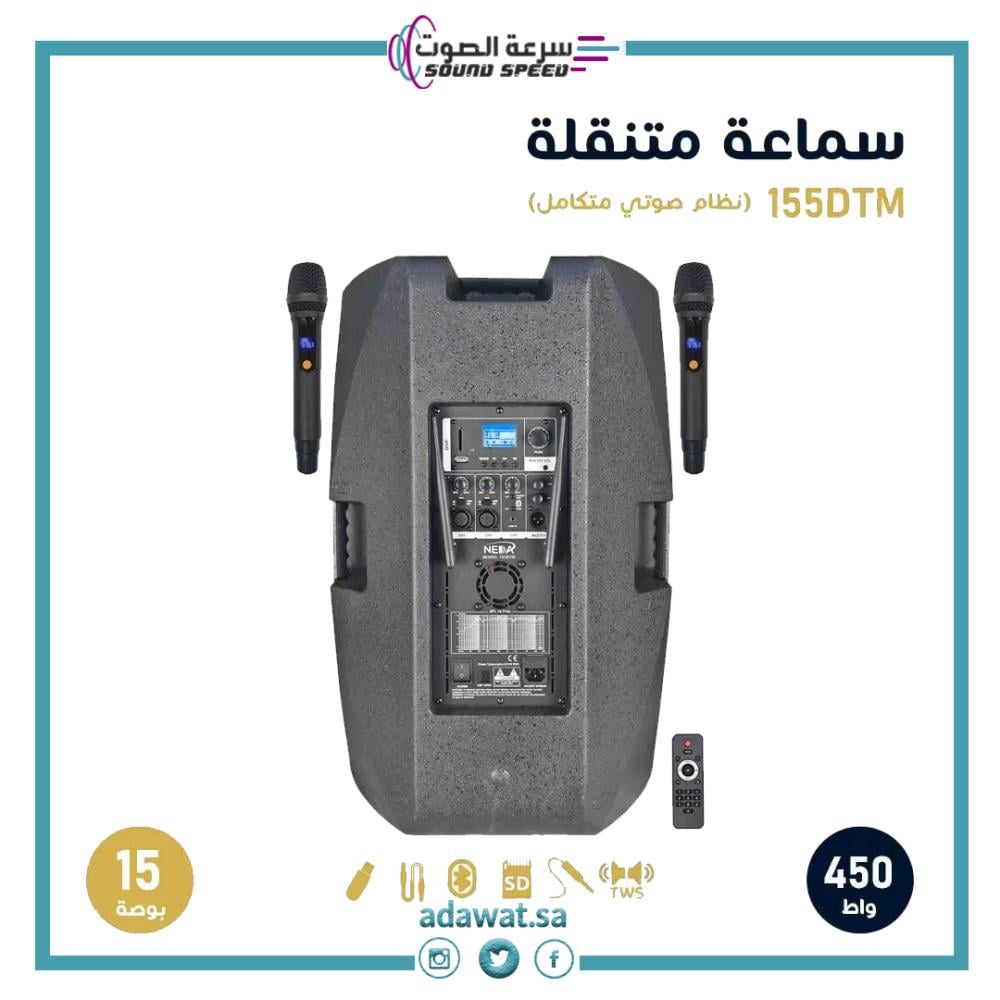 مكبر صوت احترافي (نظام صوتي متكامل) 15 بوصة مع ميكروفونيين يدوية لاسلكية NA-155DTM Professional Portable Amplified Speaker 15 inch with 2 Mic