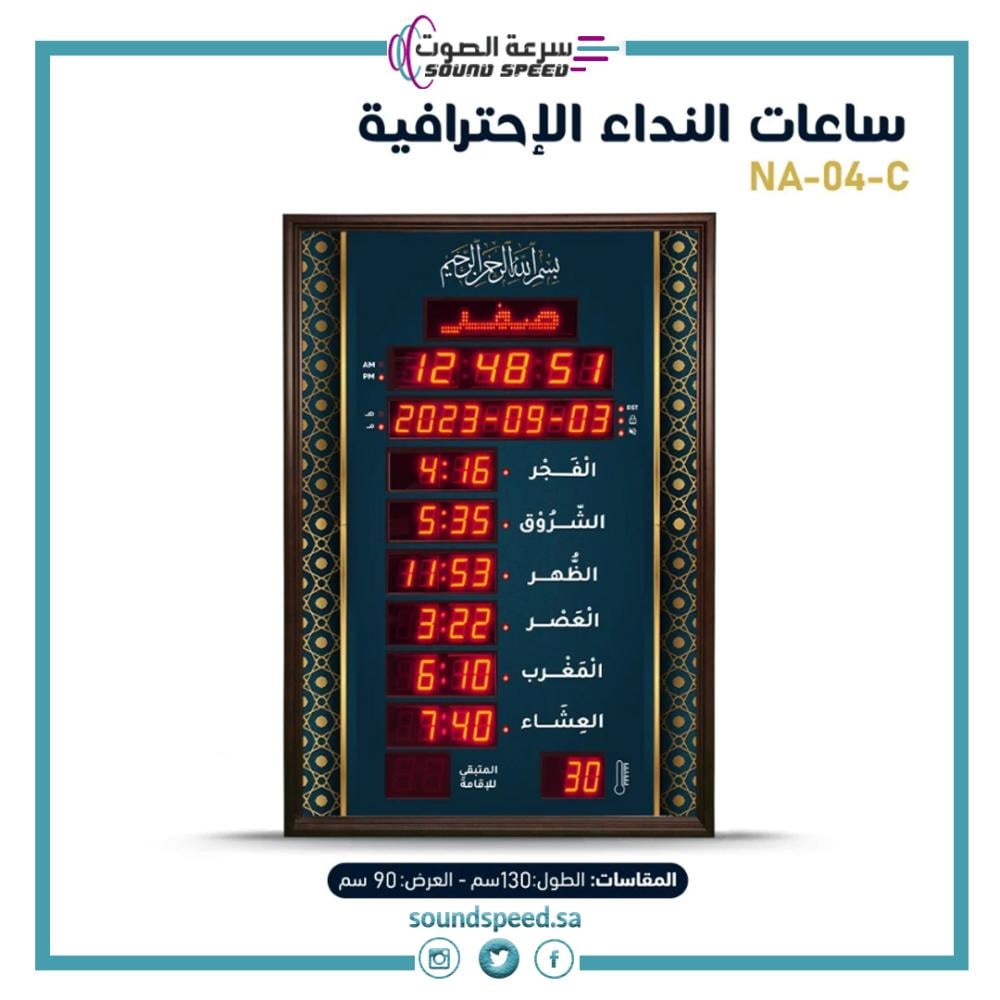 ساعة ماركة نداء NA-04-C مو مجرد ساعة، هي ثورة تقنية في خدمة بيوت الله. ذكاؤها الاصطناعي وجودة صناعتها خياركم الأمثل لجوامعكم ومساجدكم.