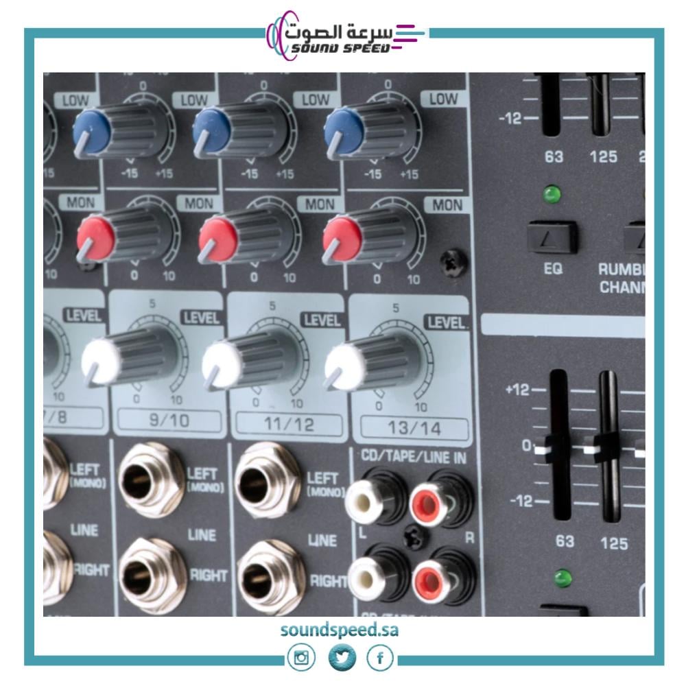 - تحكم احترافي: يحتوي على 9 مداخل للقنوات، وهذا يخليك توصل عدد كبير من الميكروفونات والآلات الموسيقية في نفس الوقت.